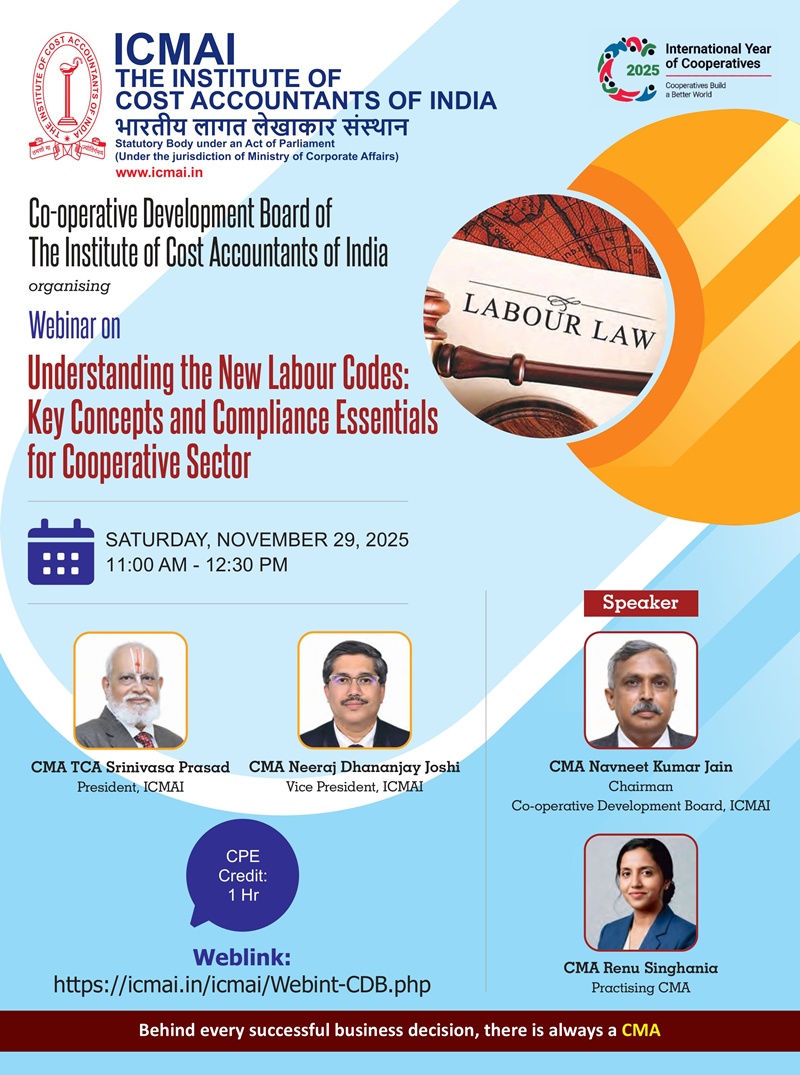 Webinar on Understanding the New Labour Codes: Key Concepts and Compliance Essentials for Cooperative Sector on Saturday, November 29, 2025, 11:00 AM - 12:30 PM