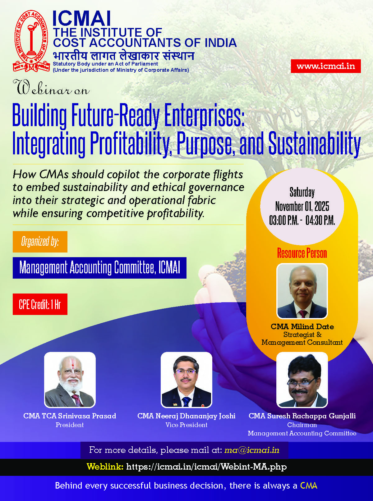 Webinar on Building Future-Ready Enterprises: Integrating Profitability, Purpose, and Sustainability on Saturday, November 1, 2025