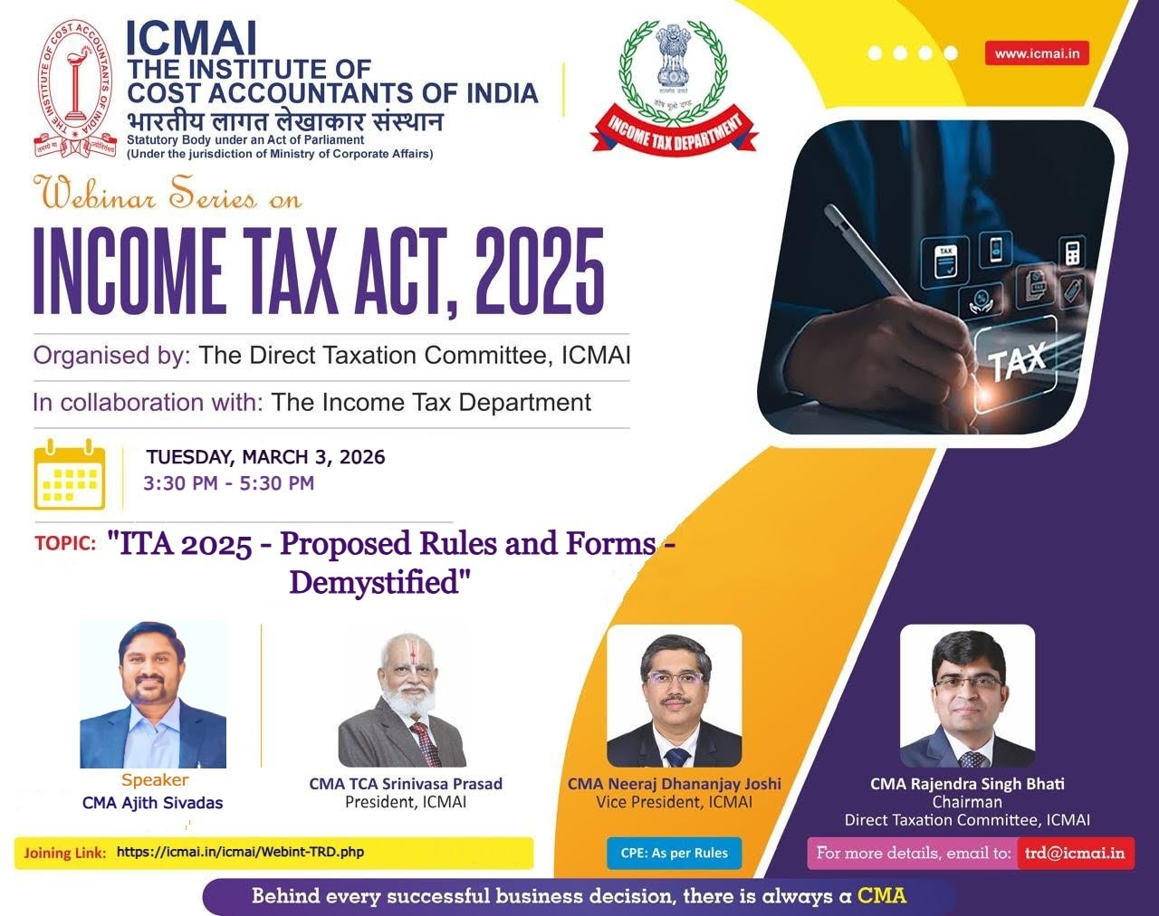 Webinar: "ITA 2025 - Proposed Rules and Forms - Demystified", March 03 Tuesday, 2026 Time :3:30 PM - 5:30 PM