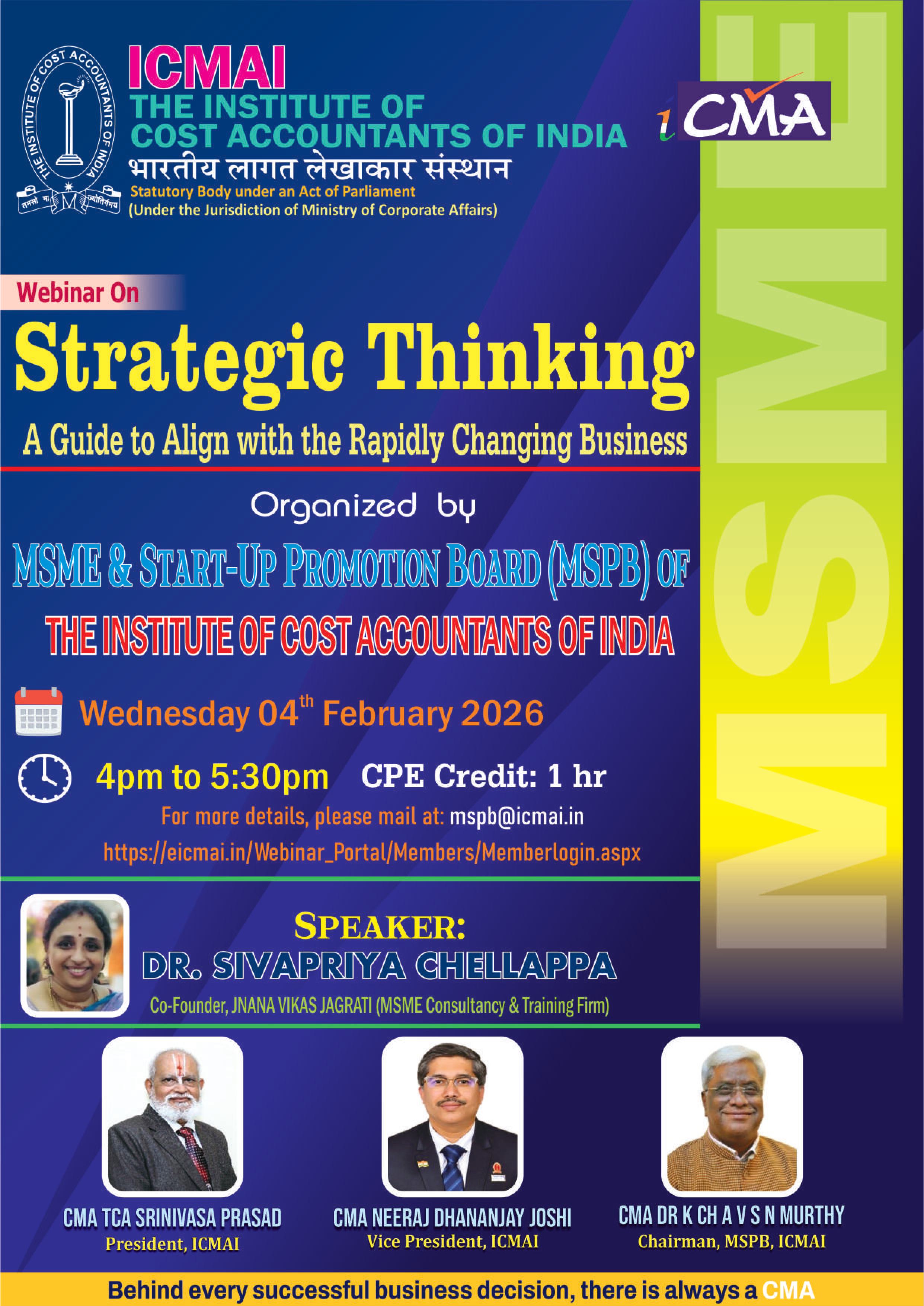 Webinar on "Strategic Thinking - A Guide to Align with the Rapidly Changing Business" organised by MSME and Start up Promotion Board (MSPB) on 4th February 2026 at 4 pm