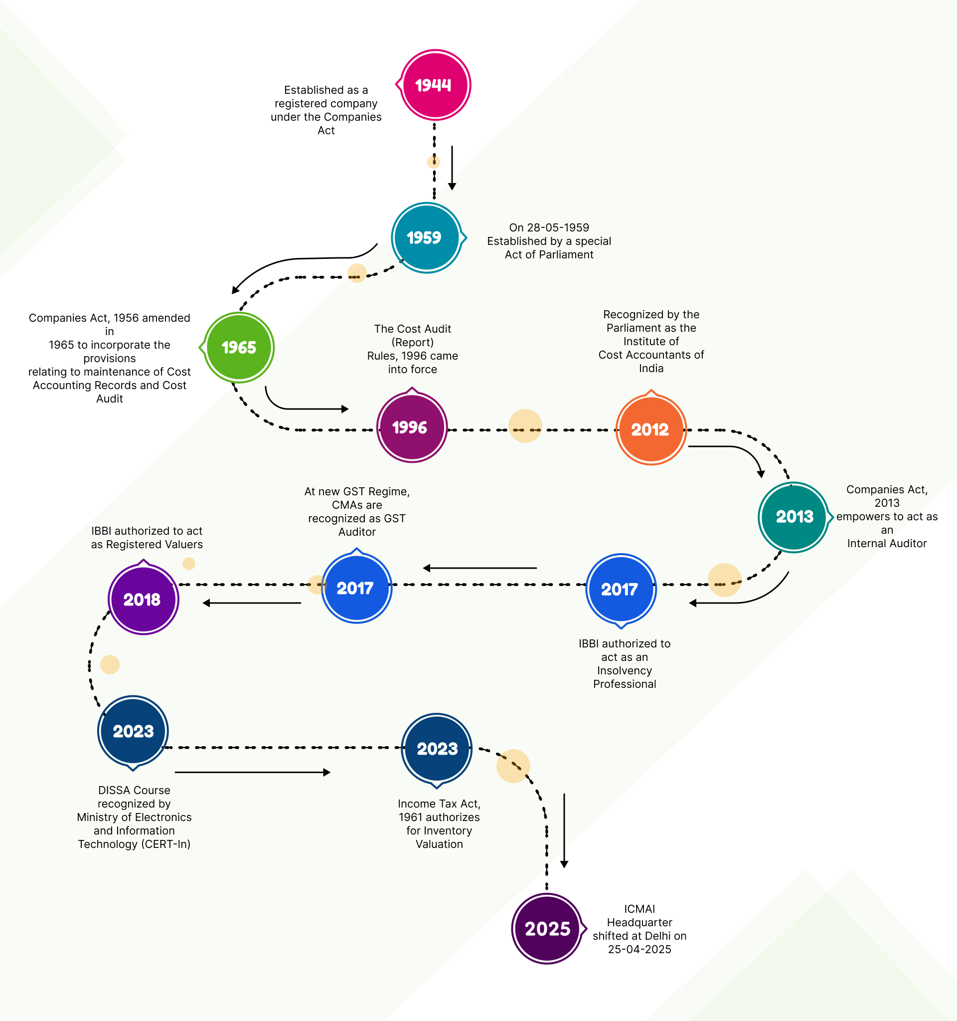 The Institute of Cost Accountants of India (erstwhile The Institute of Cost and Works Accountants of India) was first established in 1944 at the then Calcutta as a registered company under the Companies Act with the objects of promoting, regulating and developing the profession of Cost Accountancy.