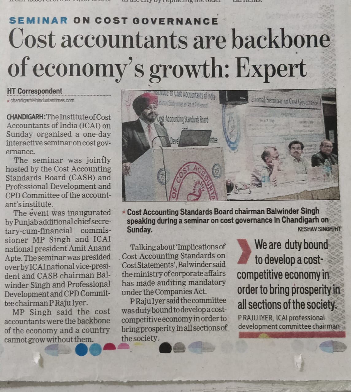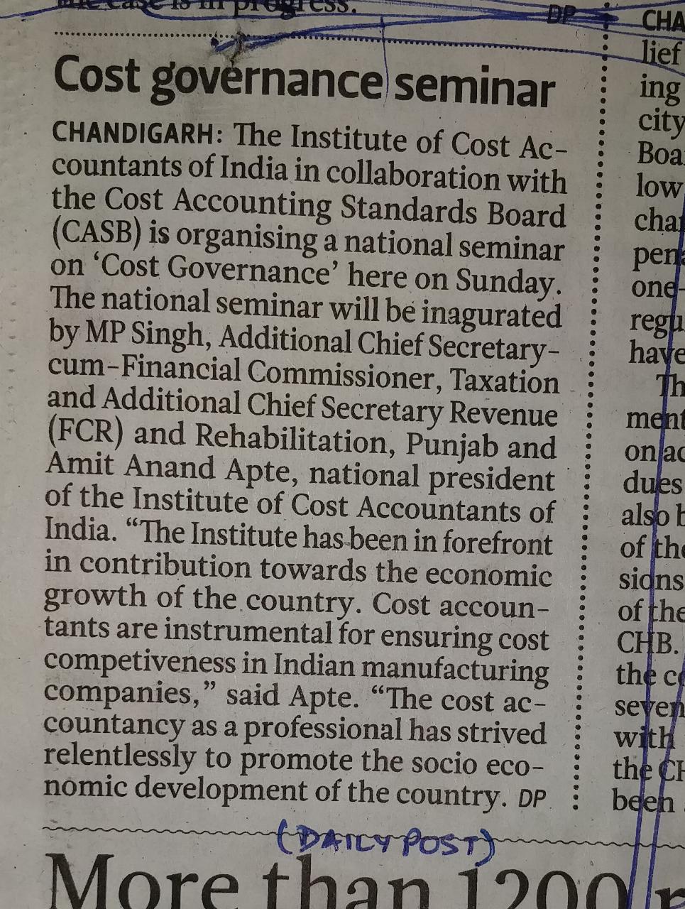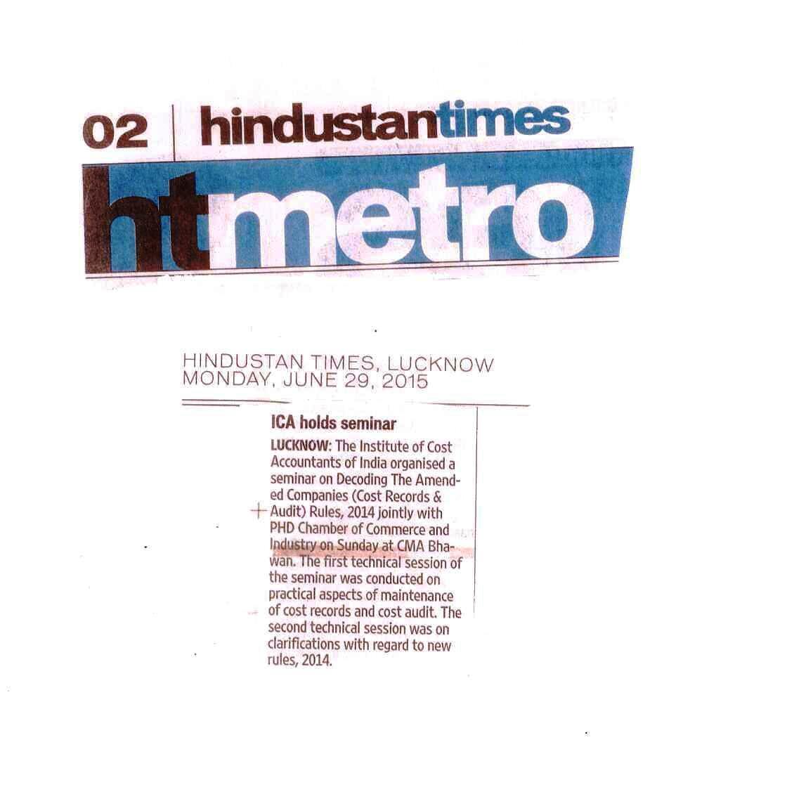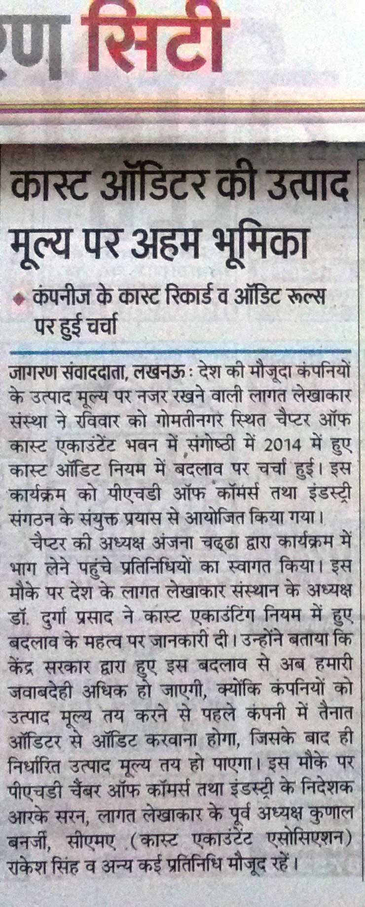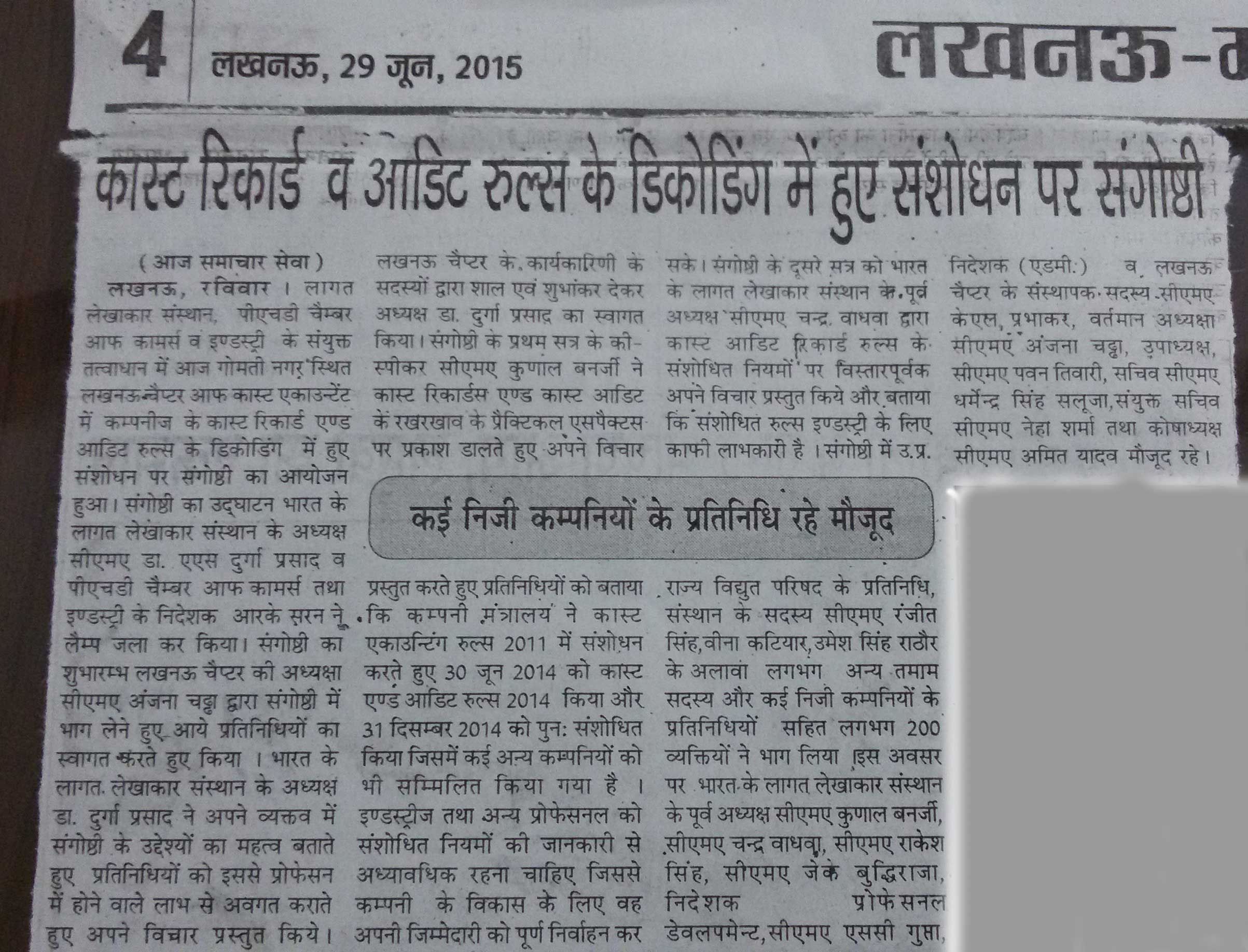 DECODING THE AMENDED COMPANIES (COST RECORDS & AUDIT) RULES 2014 jointly with PJD Chamber of Commerce and Industry on 28.06.15 at CMA Bhawan, Vikas Khand, Gomti Nagar, Lucknow.