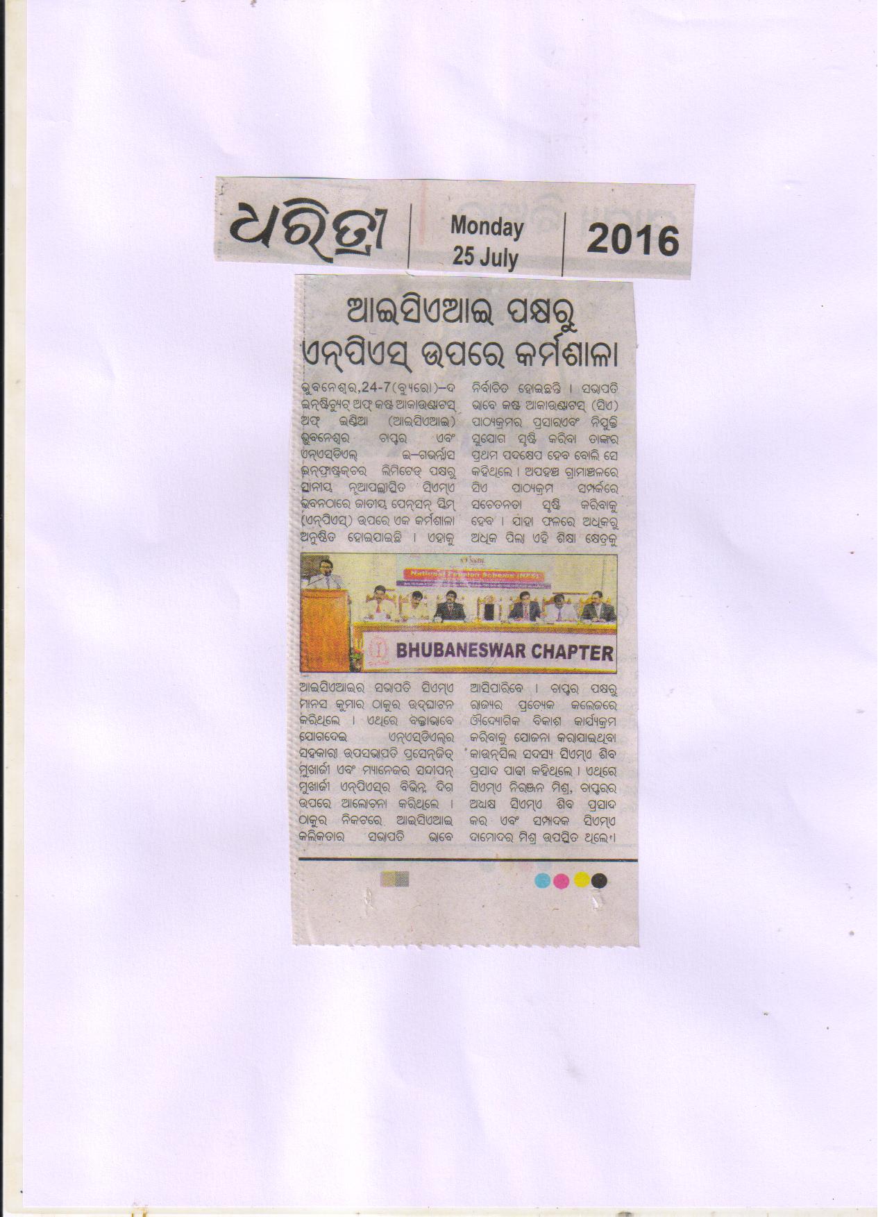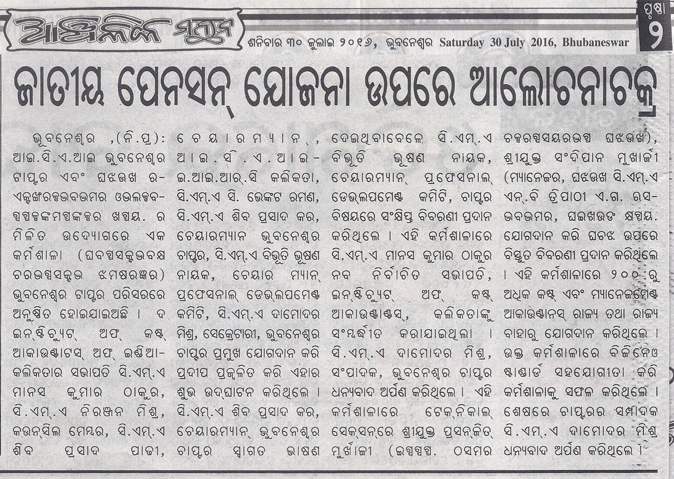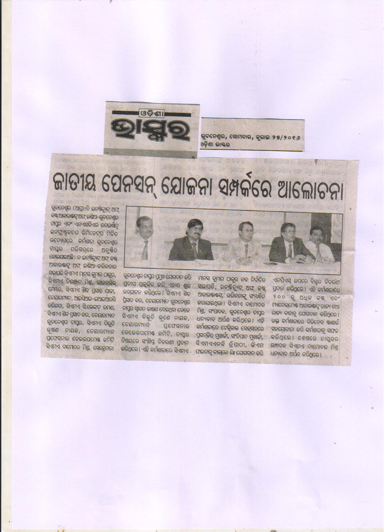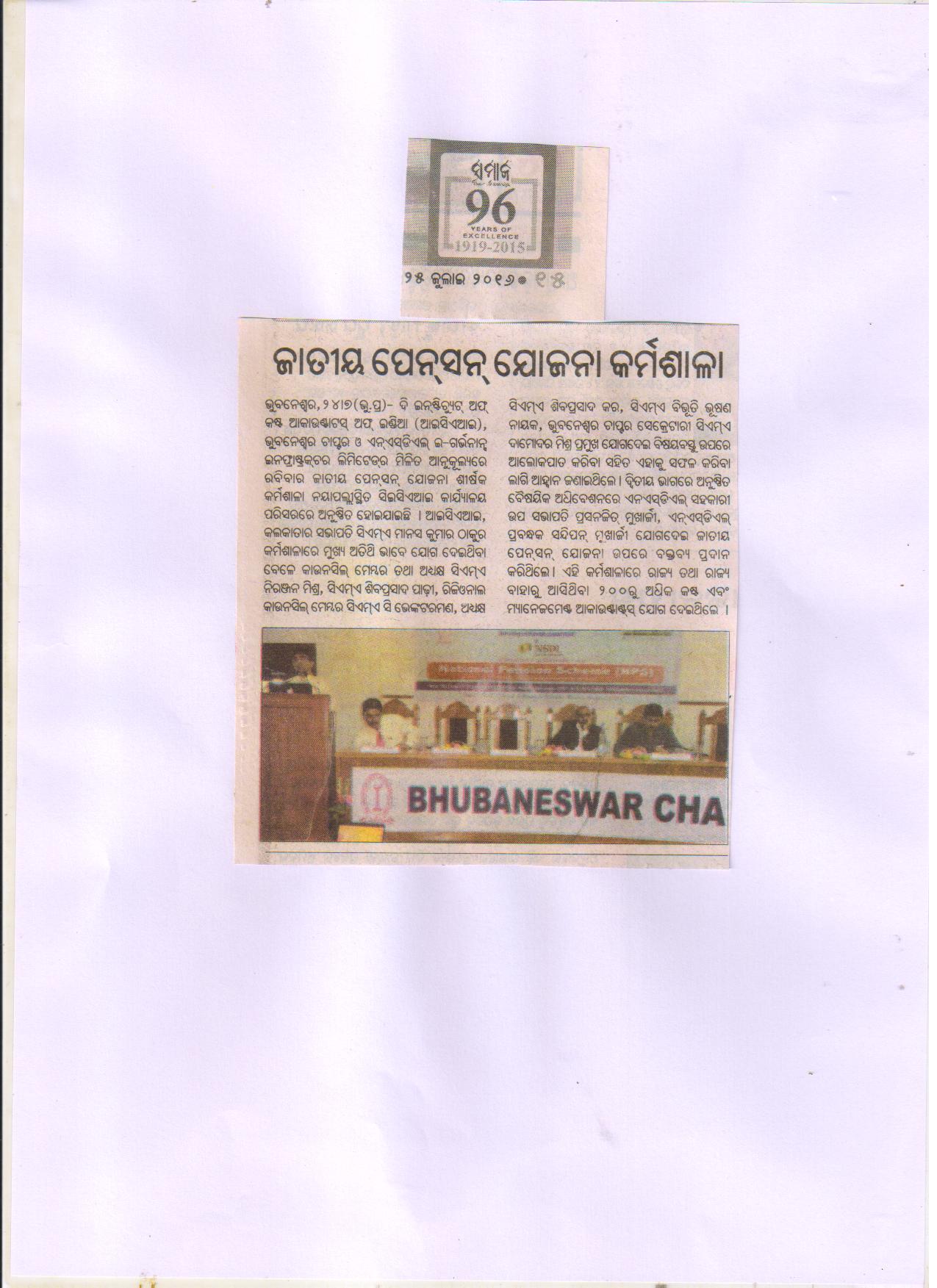 Seminar on “NATIONAL PENSION SCHEME (NPS)” Jointly Organised by The Institute of Cost Accountants of India-Bhubaneswar Chapter & NSDL e-Governance Infrastructure Ltd. in association with Business Standard on July 24, 2016