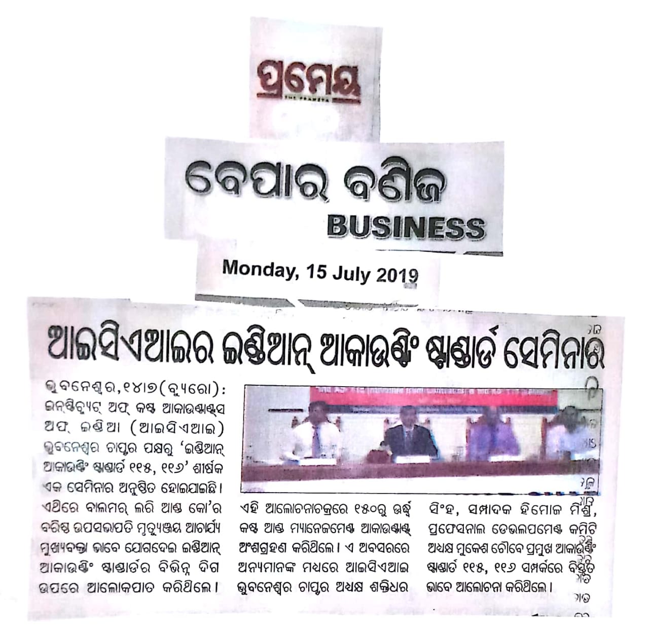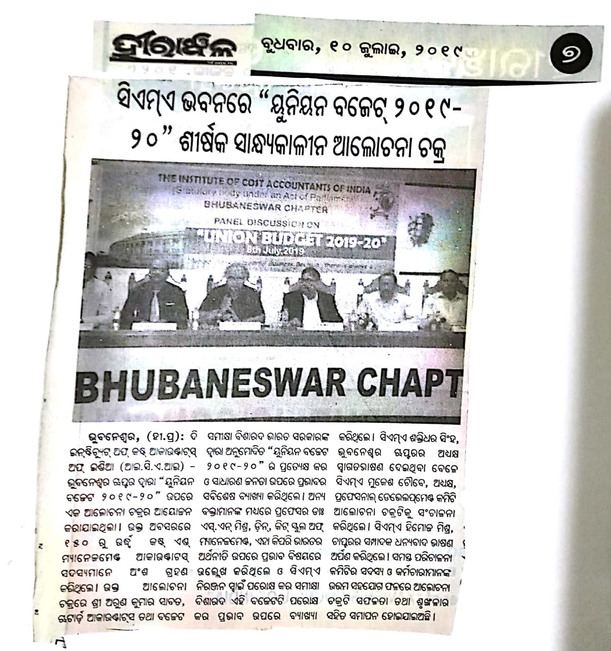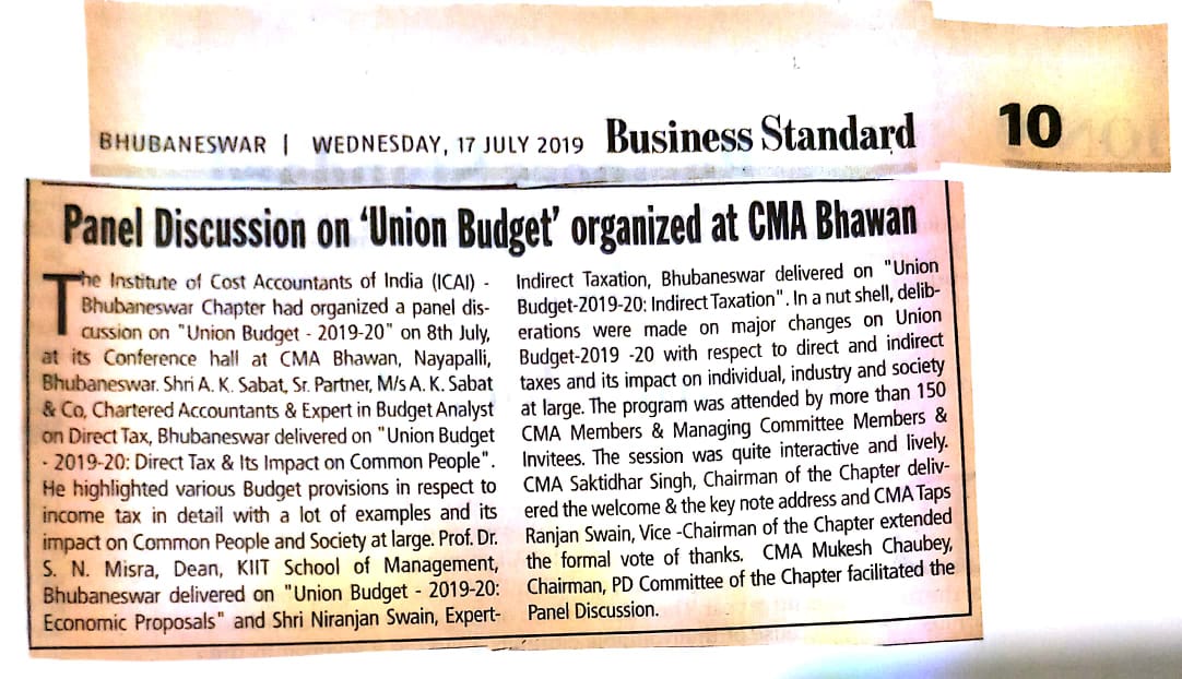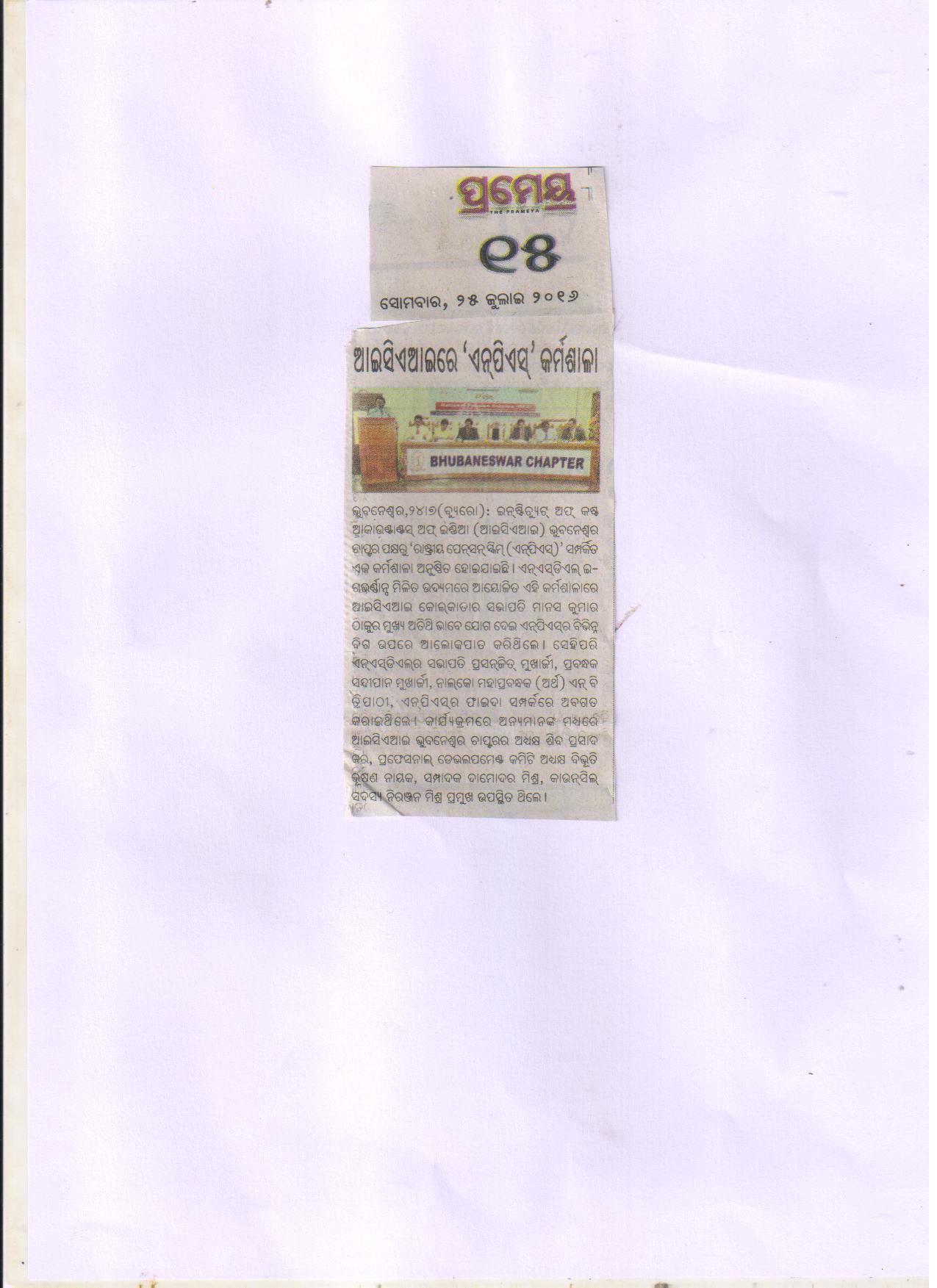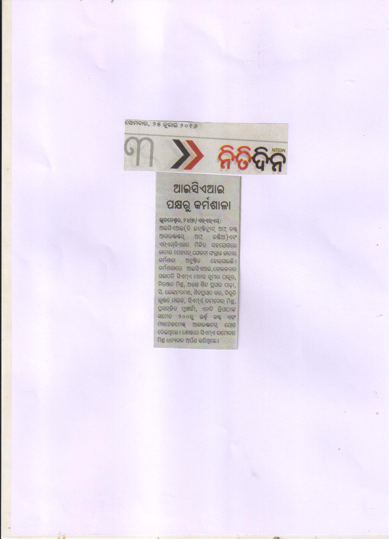Seminar on “NATIONAL PENSION SCHEME (NPS)” Jointly Organised by The Institute of Cost Accountants of India-Bhubaneswar Chapter & NSDL e-Governance Infrastructure Ltd. in association with Business Standard on July 24, 2016