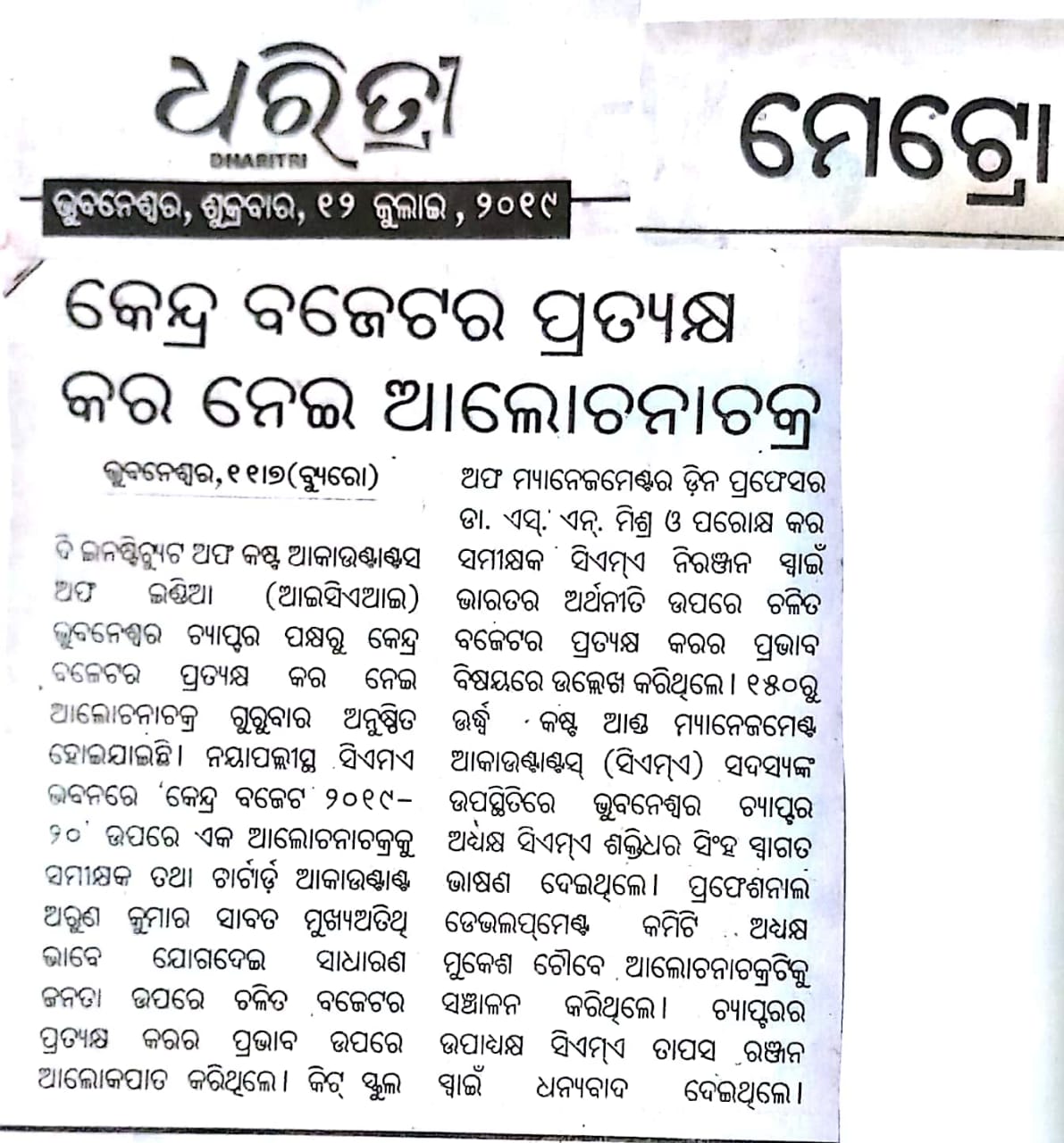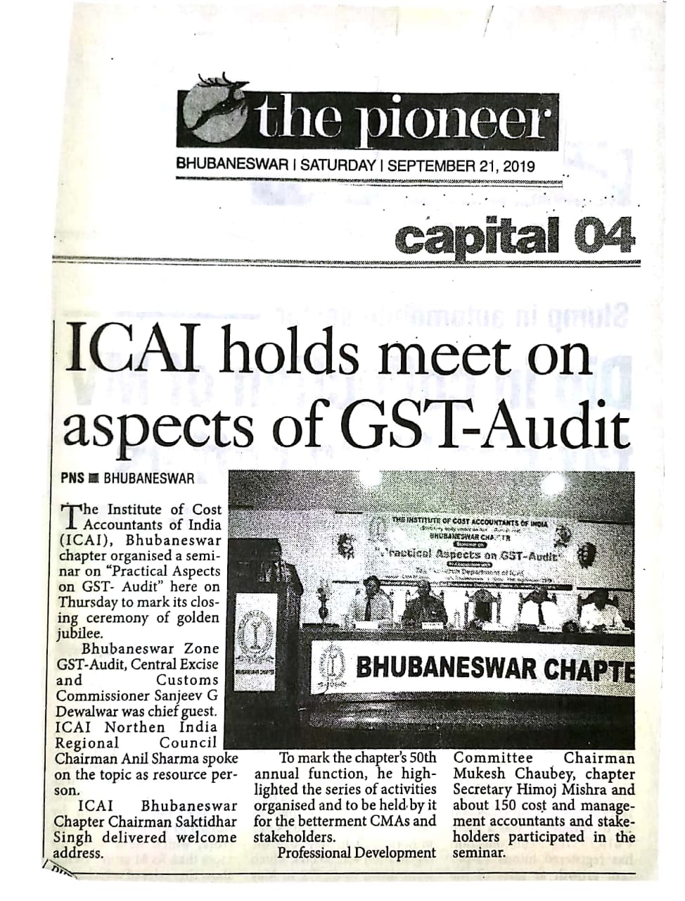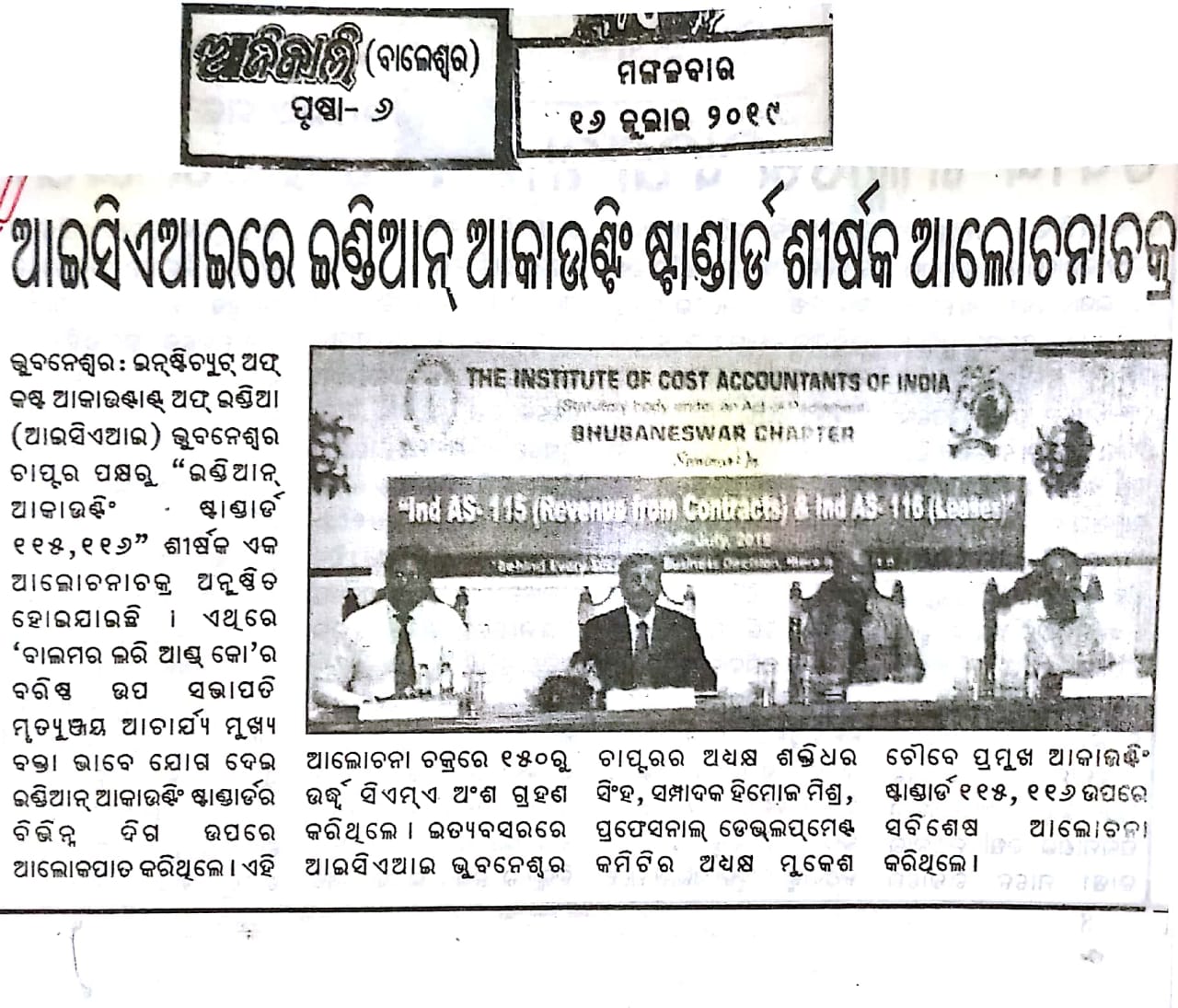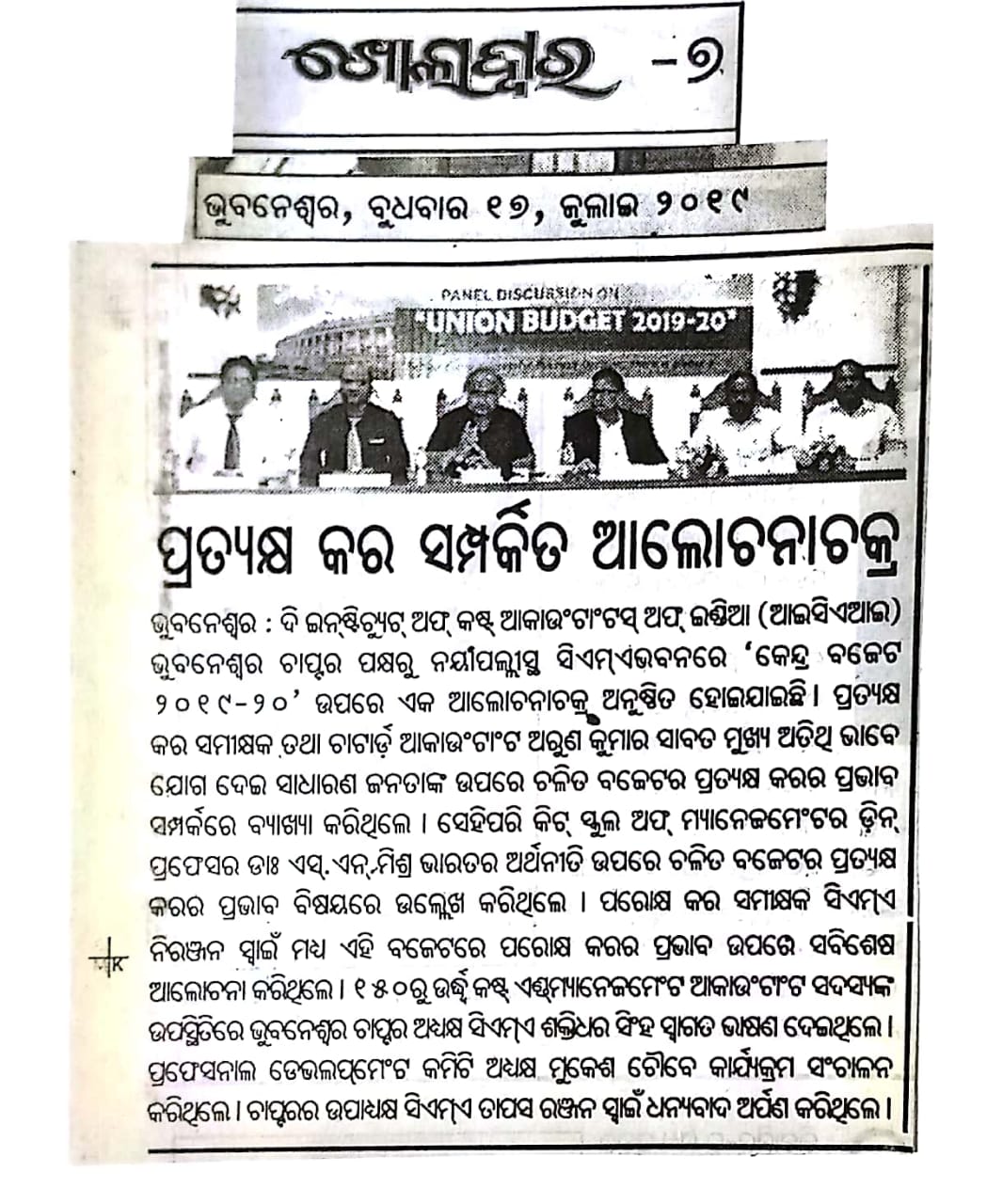 Seminar on “NATIONAL PENSION SCHEME (NPS)” Jointly Organised by The Institute of Cost Accountants of India-Bhubaneswar Chapter & NSDL e-Governance Infrastructure Ltd. in association with Business Standard on July 24, 2016
