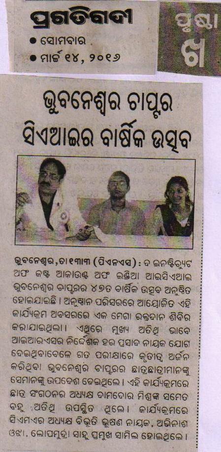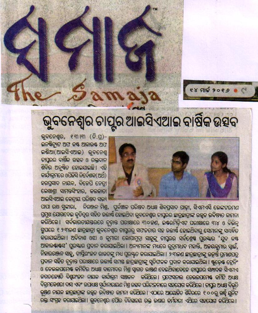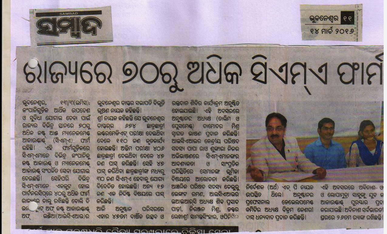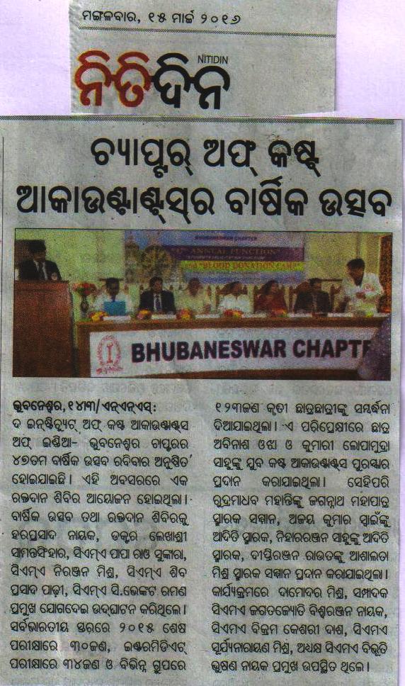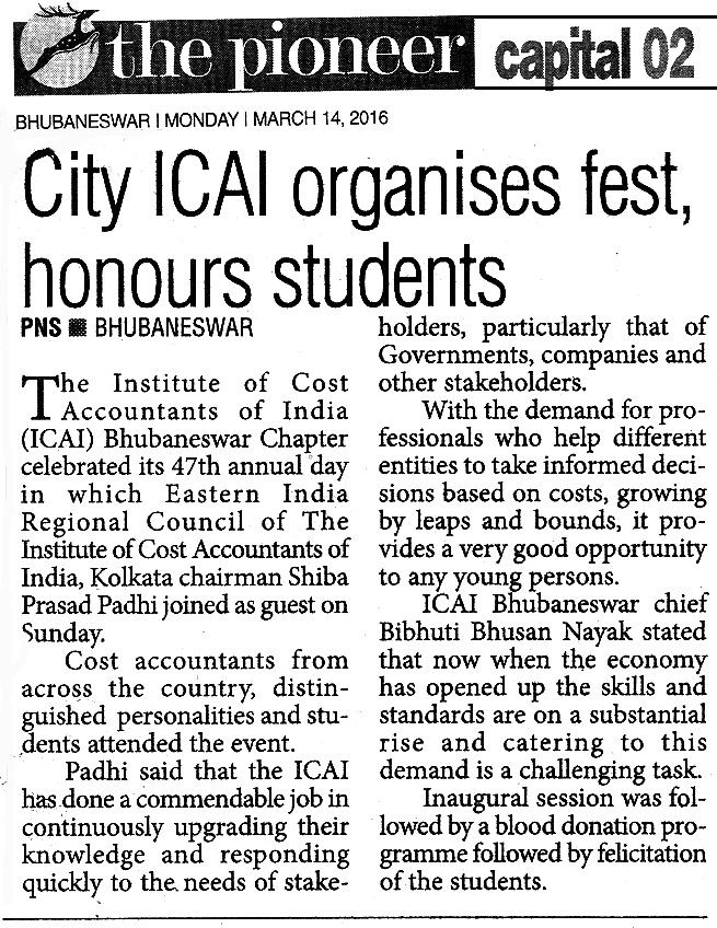 47th Annual Function cum Students Felicitation Function for December, 2015 term Pass out Students of the Chapter and Blood Donation Camp organised by the Bhubaneswar Chapter on March 13, 2016.
