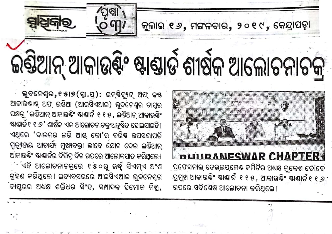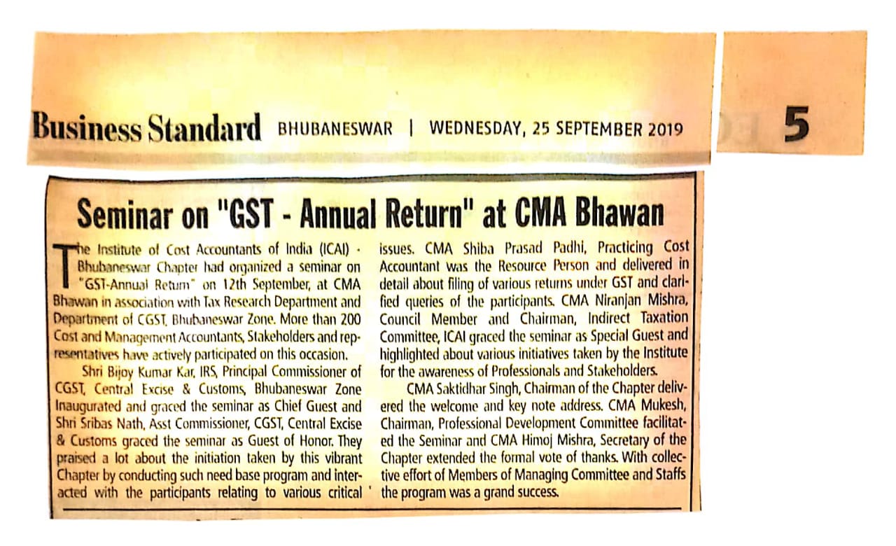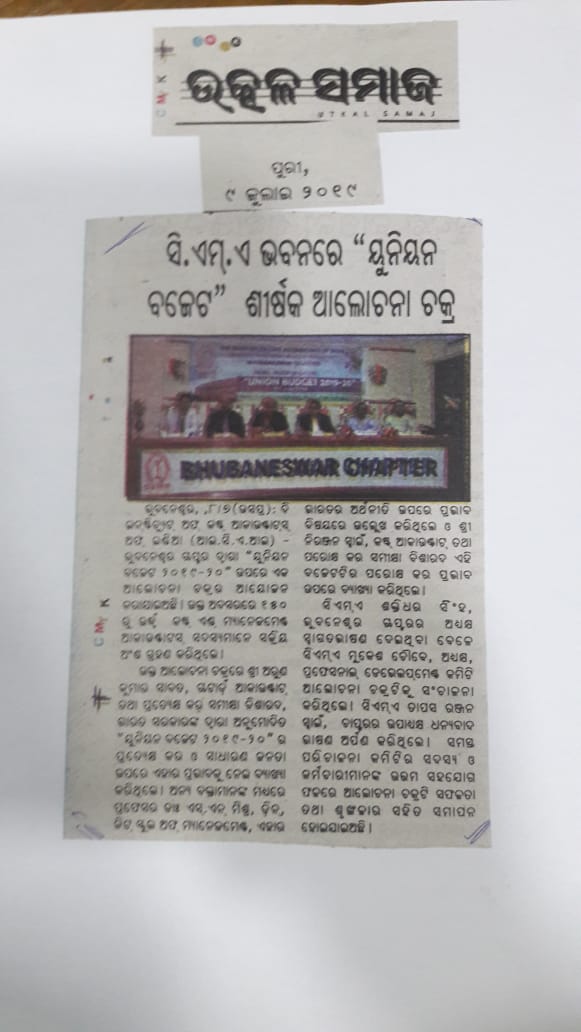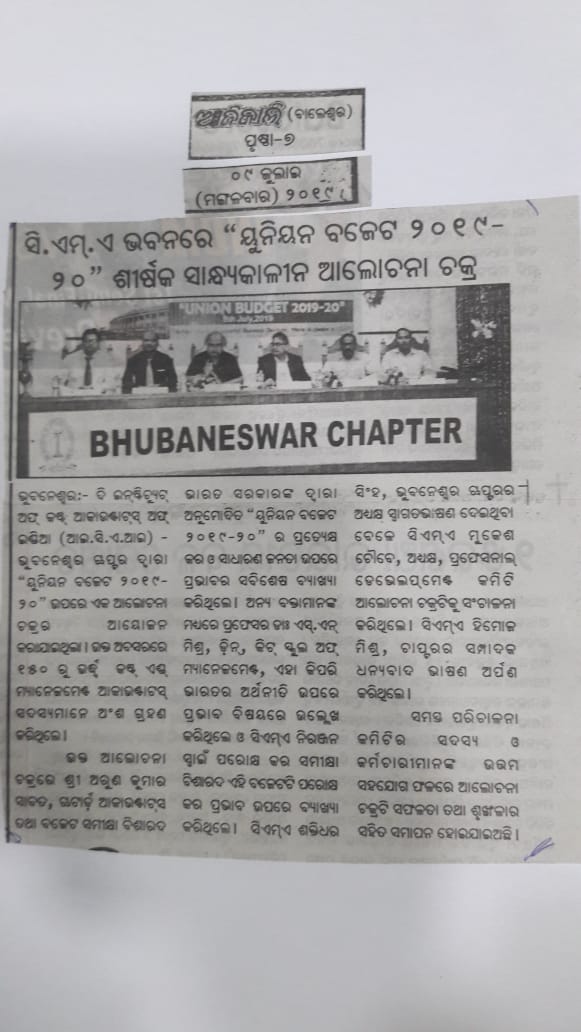 Investor Awareness Programme and Seminar on "Opportunities and Trends of Investment in Mutual Fund and Capital Market" organised by the ICMAI-Bhubaneswar Chapter on August 14, 2016.