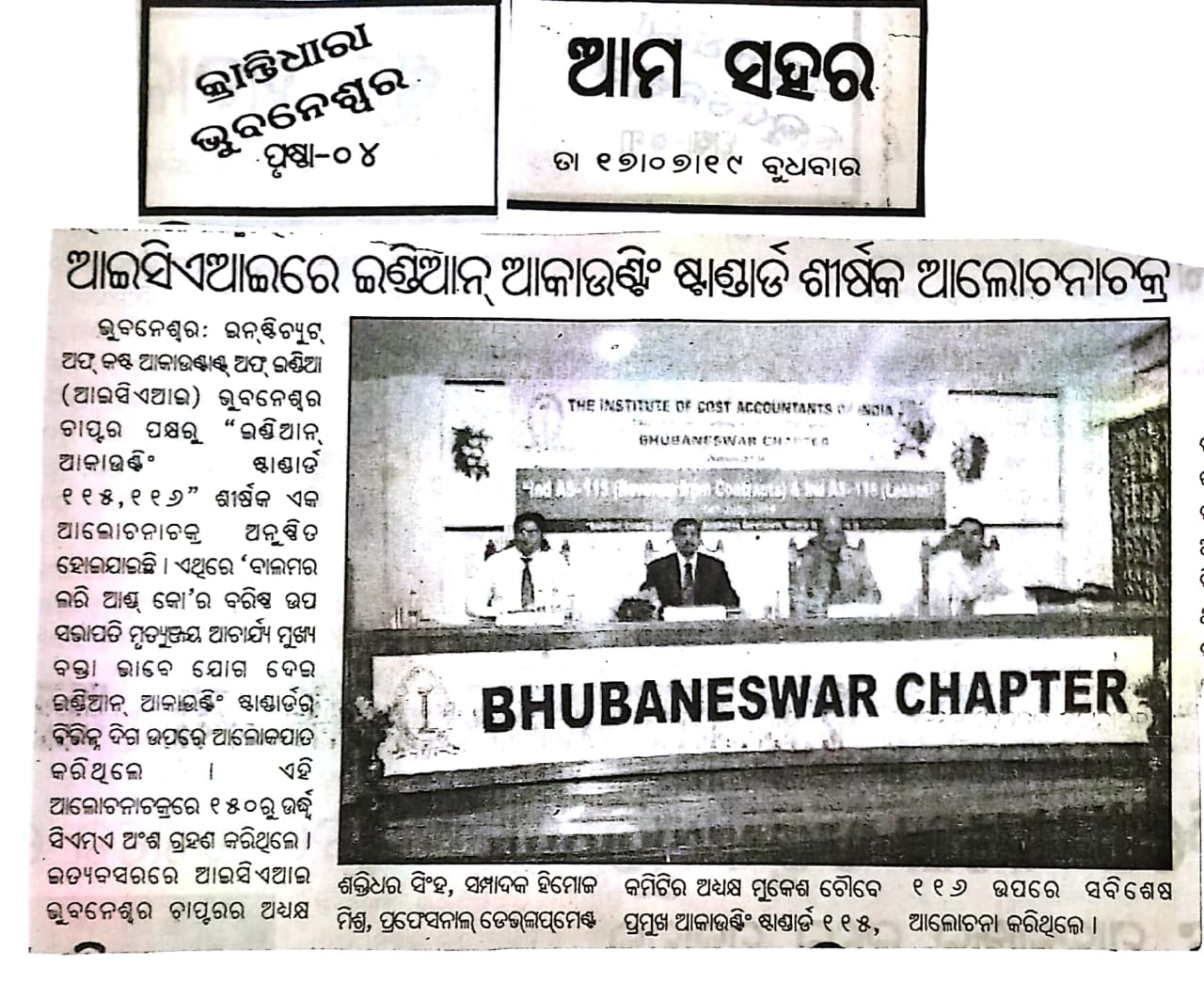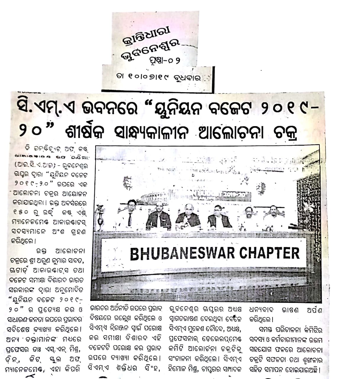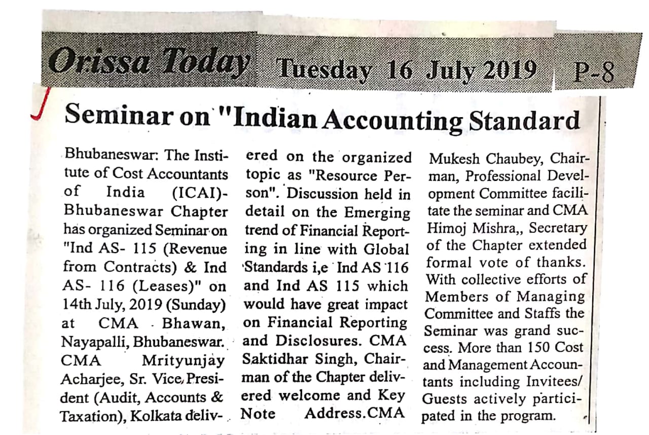 Investor Awareness Programme and Seminar on "Opportunities and Trends of Investment in Mutual Fund and Capital Market" organised by the ICMAI-Bhubaneswar Chapter on August 14, 2016.